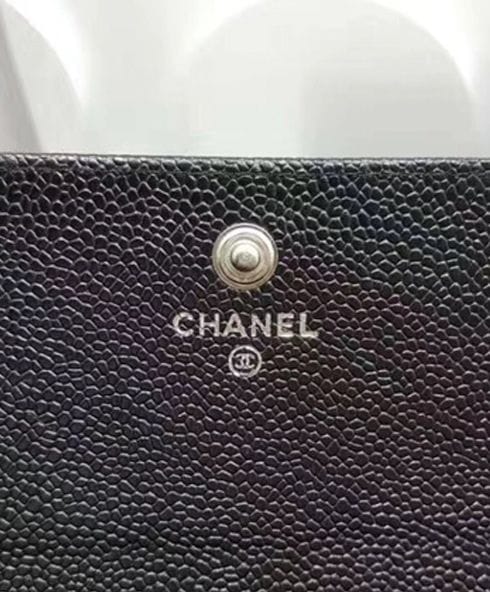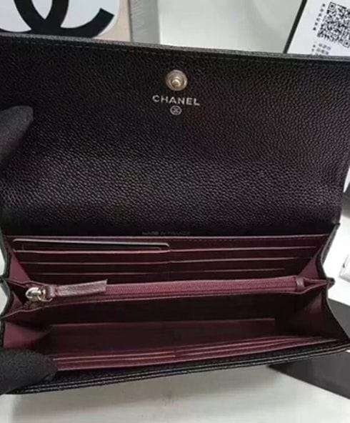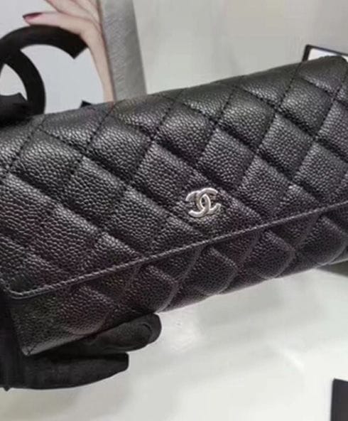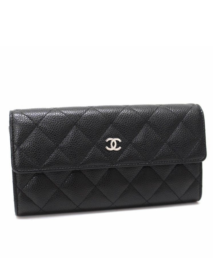 A timeless and elegant accessory, this Chanel Quilted Flap Wallet is crafted from black diamond-quilted caviar leather, offering both durability and sophistication. The exterior is adorned with gold-tone hardware and features the iconic CC logo on the flap for a refined touch.