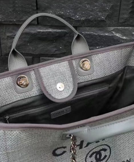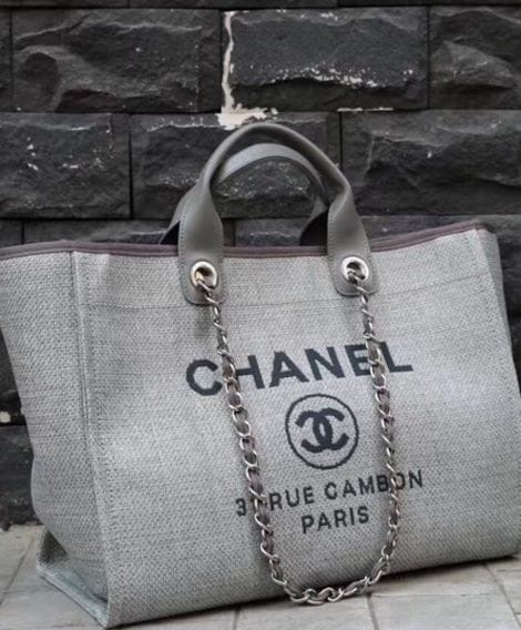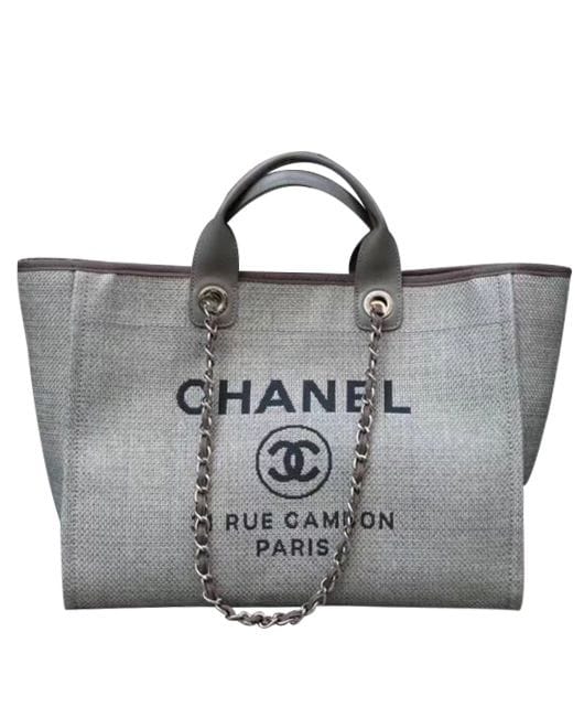 This Chanel Medium Deauville Tote combines sophistication with practicality, featuring silver-tone hardware and tonal leather trim for a polished look. The bag is equipped with dual chain-link and leather shoulder straps for ease of carrying, while the stitched logo motif at the front adds a signature touch of elegance. A perfect blend of style and functionality, ideal for daily use.