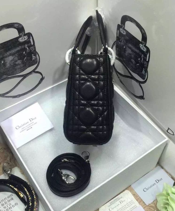Dior Lady Dior Mini Classic Tote Bag With Lambskin Black