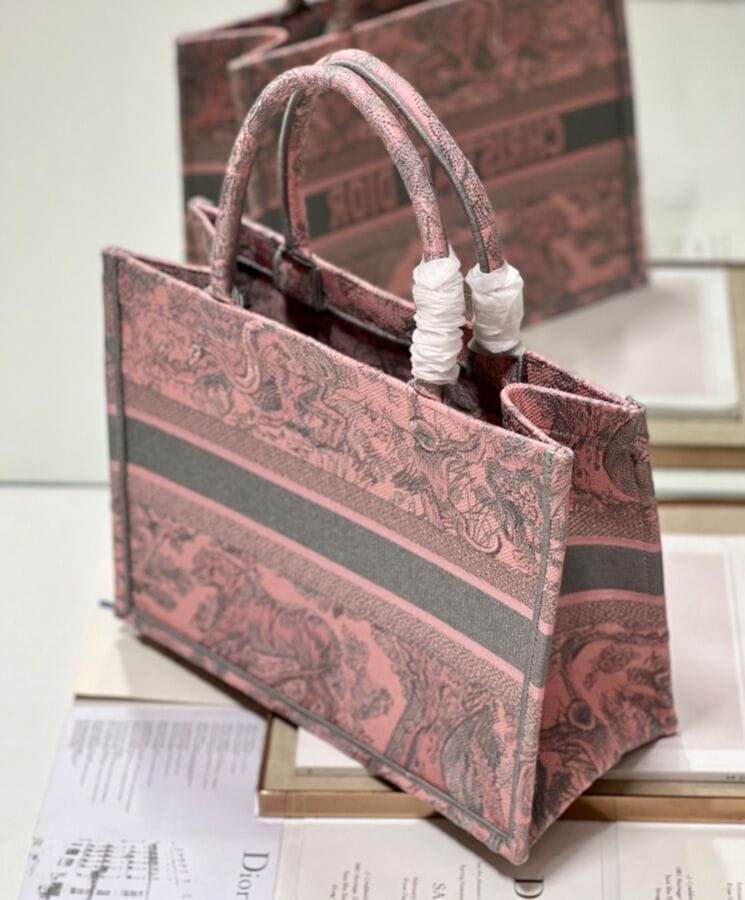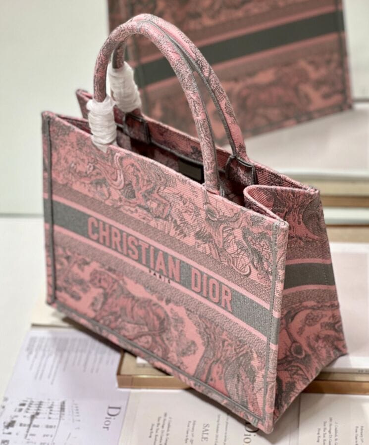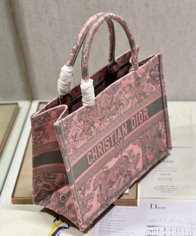 Designed by Maria Grazia Chiuri, Creative Director of Dior, the Dior Book Tote has become an iconic expression of the Houseโs refined aesthetic. Crafted to effortlessly carry daily essentials, this medium-sized tote is fully embroidered with the Toile de Jouy Reverse motif, a contemporary reinterpretation of Diorโs signature pattern that plays with inverted colors for a bold, modern effect. Showcasing the Houseโs exceptional craftsmanship, it is elegantly finished with the “Dior Paris” signature on the front. Versatile and sophisticated, it can be carried by hand or worn over the shoulder for effortless elegance.
