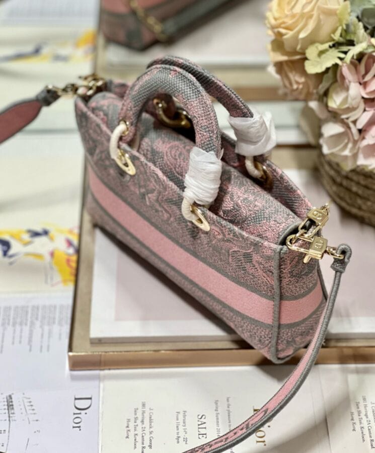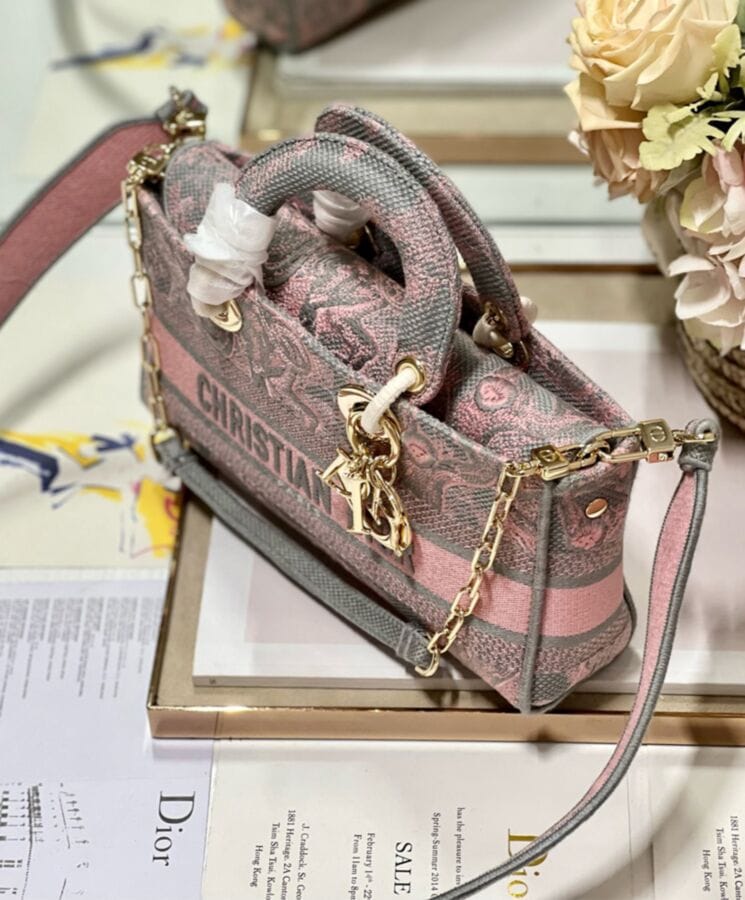The Lady D-Joy bag embodies the refined minimalism of the Lady Dior collection, showcasing the Houseโ€™s timeless vision of elegance and beauty. Fully embroidered with the Reverse Jouy printโ€”a contemporary reinterpretation of a classic Dior motif with an inverted effectโ€”this exquisite design is further elevated by the delicate movement of the D.I.O.R. charm in light gold-finish metal. The medium-sized silhouette offers exceptional versatility, featuring both a detachable chain shoulder strap and an adjustable, removable leather strap, allowing it to be carried by hand, worn over the shoulder, or styled crossbody for effortless everyday sophistication.