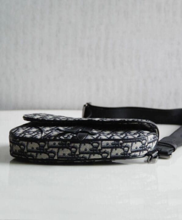 The Saddle Bag stands out with its emblematic Dior Oblique jacquard motif, showcasing the Houseโs signature elegance. Its iconic silhouette features a magnetic flap that discreetly conceals a zip closure, ensuring essentials are securely stored. Designed for versatility and comfort, the bag can be worn over the shoulder or crossbody using the adjustable Dior nylon jacquard shoulder strap, accented with leather detailing. The look is completed with an aluminum CD buckle featuring the Dior signature.
