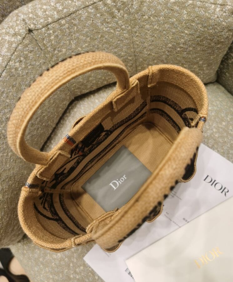 The Catherine Tote, a signature creation by Maria Grazia Chiuri, is thoughtfully designed to carry all your daily essentials. Crafted from beige jute canvas, it is beautifully embroidered with the โLโUnion Fait la Forceโ motto, drawing inspiration from the atelierโs jute bags and reflecting the collective spirit cherished by the Creative Director. Accented with the โDior PARISโ signature on the front, this small tote showcases Diorโs exceptional craftsmanship. With its practical design, featuring eight exterior pockets, it can be elegantly carried by hand or worn over the shoulder.
