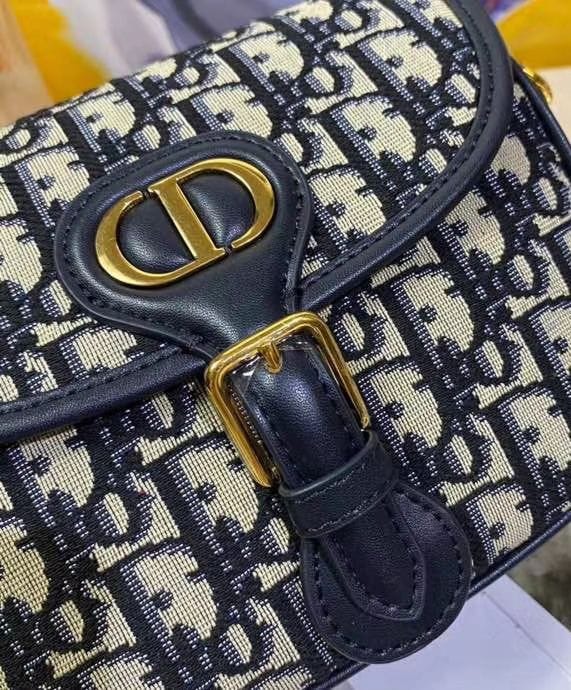 The Dior Bobby shoulder bag showcases an elegant silhouette and harmonious proportions. Expertly crafted from blue Dior Oblique canvas, this small handbag is adorned with gold-finish hardware, lending a touch of vintage-inspired sophistication. The design is complemented by a detachable, adjustable sliding shoulder strap featuring a military-style buckle, allowing for versatile styling as a shoulder bag, crossbody, or carried by hand.