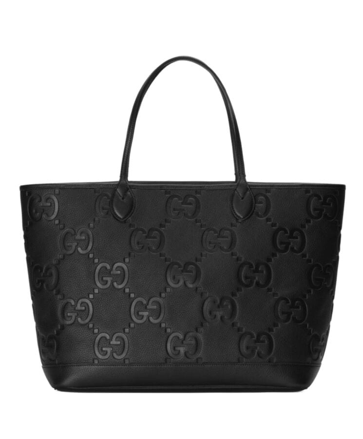 The Pre-Fall 2023 collection welcomes back the all-black jumbo GG design, gracing a curated selection of luxurious leather pieces. This bold reinterpretation of Guccio Gucciโs iconic initials transforms the classic motif into an eye-catching statement, with its maxi-sized pattern offering a modern twist on House heritage.