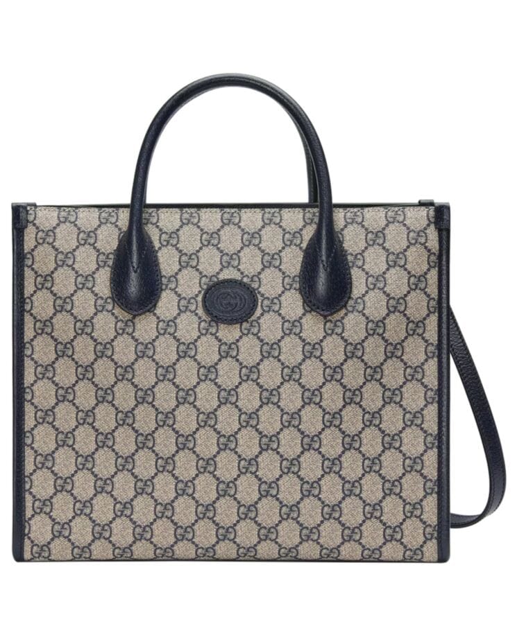 Reflecting its rich heritage, GG Supreme canvas takes center stage in a timeless interpretation for Gucci Love Parade. Renowned for its low environmental impact, this signature material has remained a defining element of the Houseโ€™s collections for decades. Here, the classic GG Supreme palette enhances the elegance of this small Interlocking G tote, seamlessly blending tradition with modern sophistication.