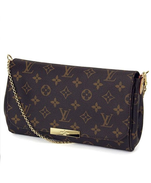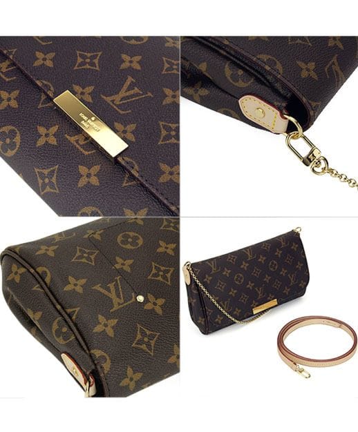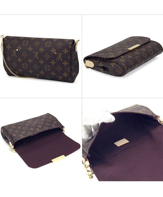 | Exterior | LV Monogram Canvas exterior with flip-over flap featuring a Louis Vuitton Paris engraved polished brass tab magnetic snap button closure, a polished brass link chain arm-carry strap and an ultra slim detachable leather shoulder strap |