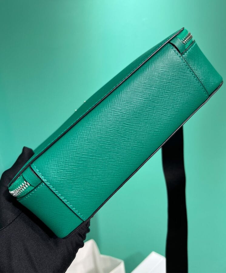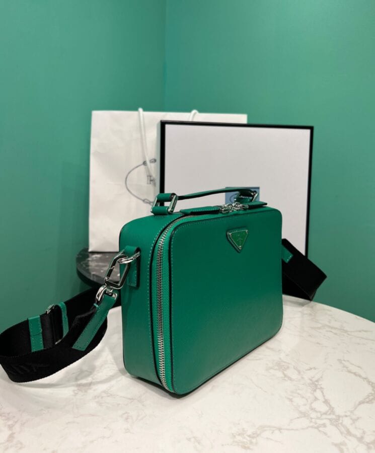 Characterized by its sleek and refined silhouette, the Prada Brique bag showcases the timeless elegance of Saffiano leatherโa signature material synonymous with luxury and rooted in the tradition of Italian craftsmanship.