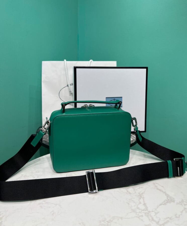 - Iconic Logo Details: Enameled metal triangle logo adorns the front, adding a signature Prada touch.