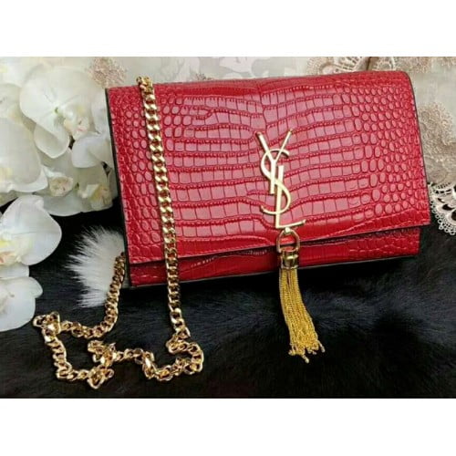 Saint Laurent Kate Medium With Tassel Crocodile Shiny Leather Red