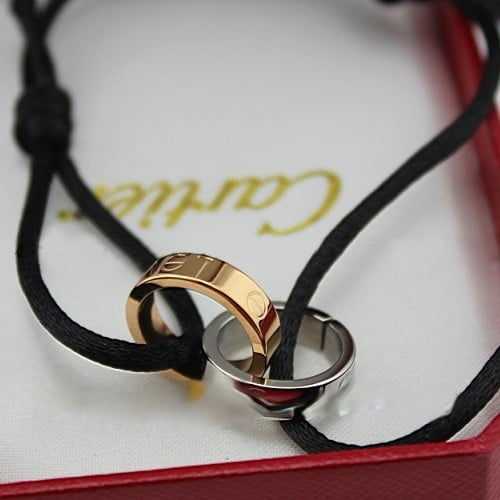 | Productย Introduction:ย | Thisย Cartier Love Bracelet Pink Gold White Gold Black Cordย entwined the two together Cartier Love Rings and aย Mysterious black stringย composition. ย Do manual work is delicate, unique design,ย It will make you add a mystery. |