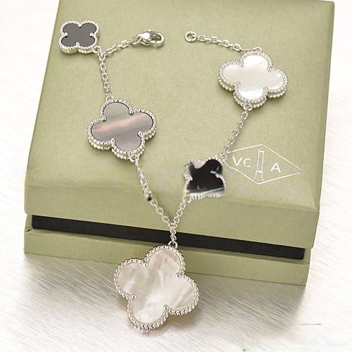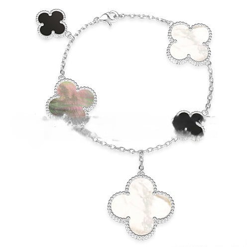 Van Cleef & Arpels Magic Alhambra Bracelet 5 Motifs White Gold With White Gray Mother Of Pearl Black Agate