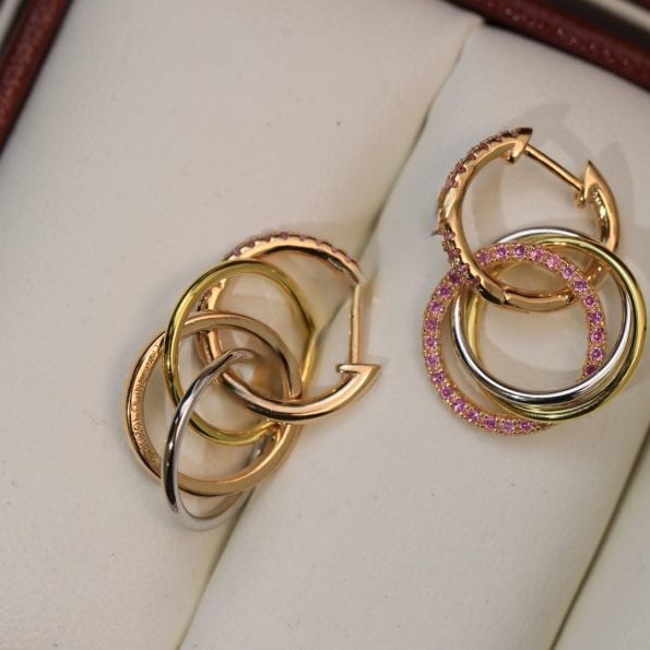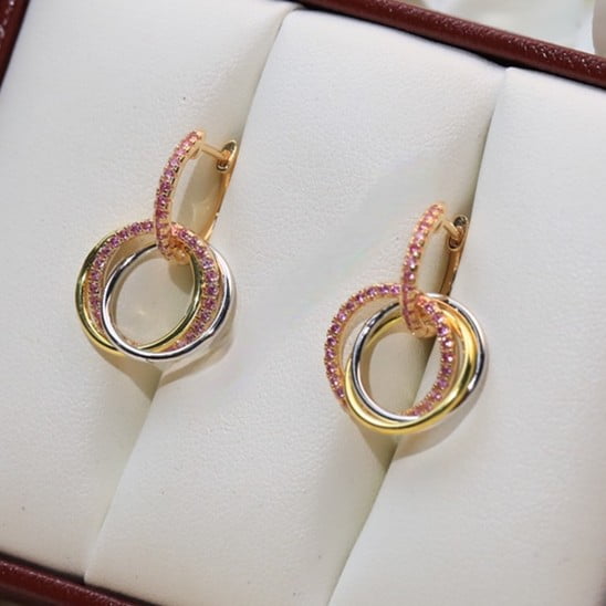 Product Name:ย Cartier Trinity Earrings White Gold/Yellow Gold with Pink Diamonds