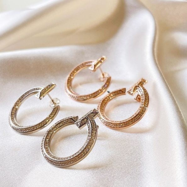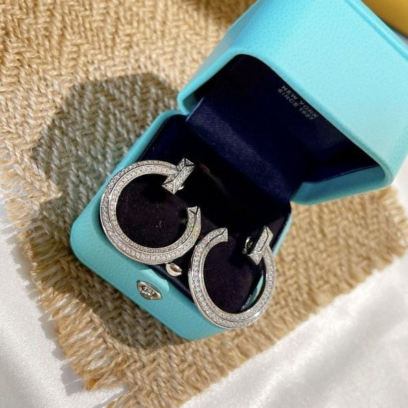 These replica Tiffany diamond earrings are innovative and unique with a split ring design. The unique circle shape represents personal and timeless power and is eye-catching. These fake Tiffany earrings will be your indispensable everyday accessory.