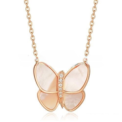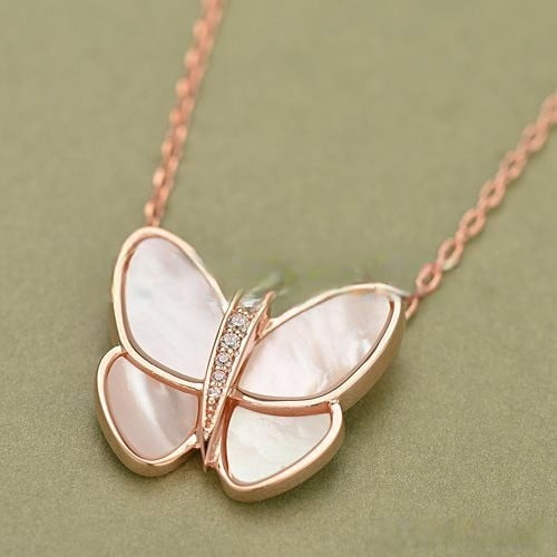 Van Cleef & Arpels Flying Butterfly Pendant Necklace Pink Gold With White Mother Of Pearl Diamonds