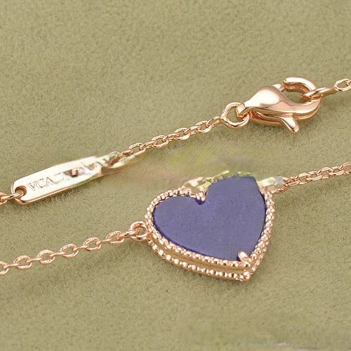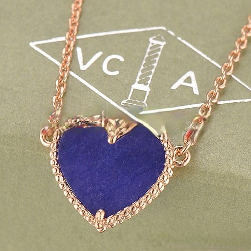 Van Cleef Arpels Sweet Alhambra Heart Pendant Pink Gold With Lapis Stone Mother Of Pearl