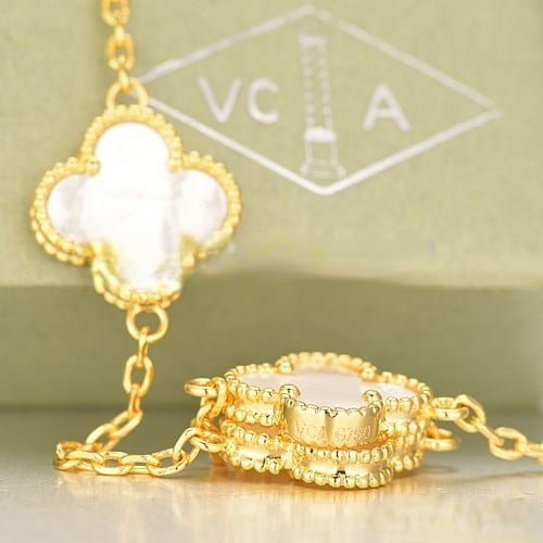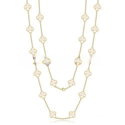 Van Cleef & Arpels Vintage Alhambra Classical series with the famous round diamonds, adhering to its 1960 launch of the iconic designs. This elegant necklace from the 10 pattern composed of gold material shine, gives a sense of timeless elegance.